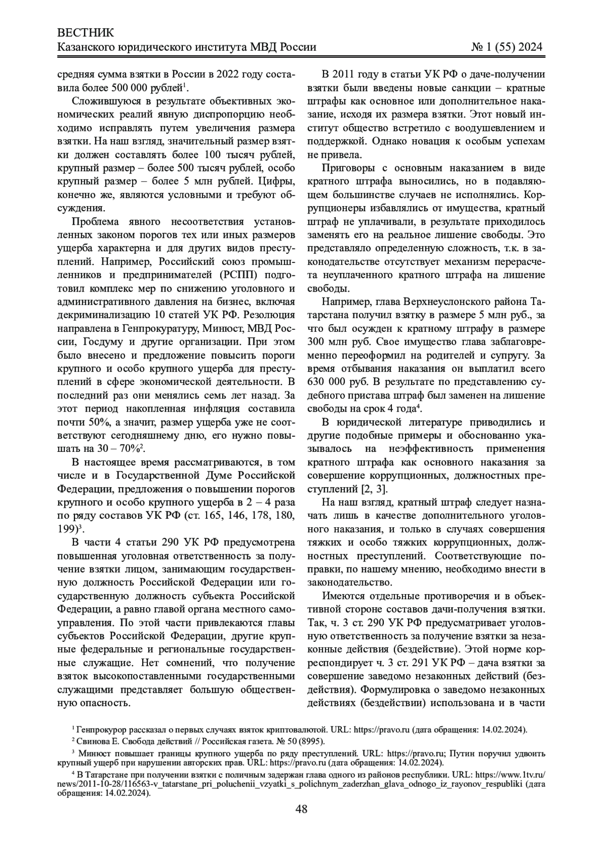 8. Белов С.Д., Чекмачева Н.В. Уголовное преследование за посредничество во взяточничестве // Законность. 2011. № 10. С. 41. EDN: OIGQTB