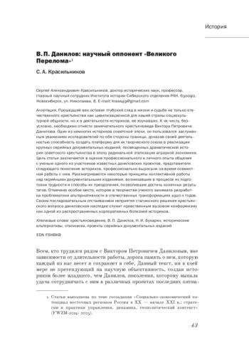 КРАСИЛЬНИКОВ С. А. В. П. ДАНИЛОВ: НАУЧНЫЙ ОППОНЕНТ «ВЕЛИКОГО ПЕРЕЛОМА» // КРЕСТЬЯНОВЕДЕНИЕ. 2025. Т. 10 № 1