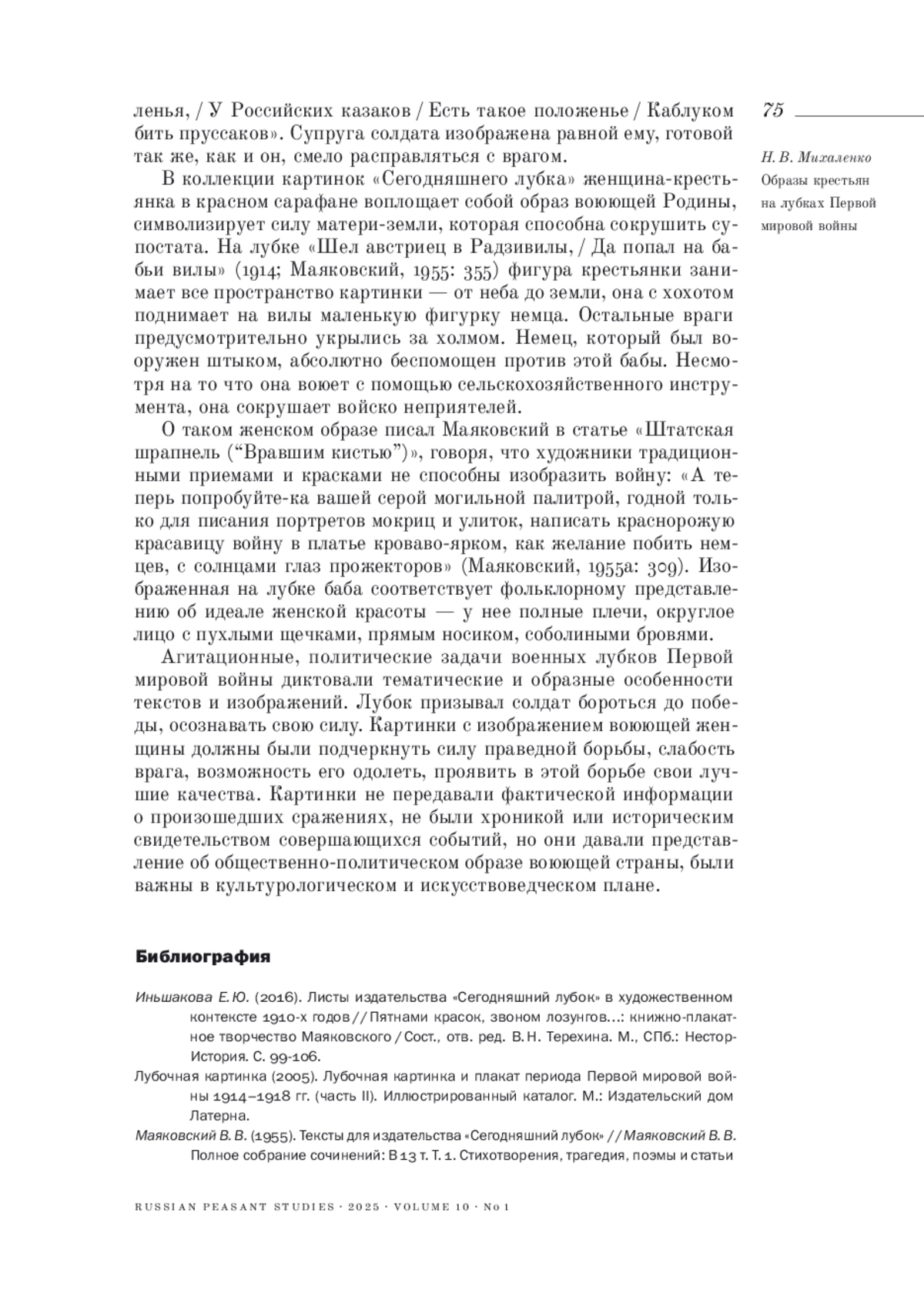 МИХАЛЕНКО Н. В. ОБРАЗЫ КРЕСТЬЯН НА ЛУБКАХ ПЕРВОЙ МИРОВОЙ ВОЙНЫ // КРЕСТЬЯНОВЕДЕНИЕ. 2025. Т. 10 № 1