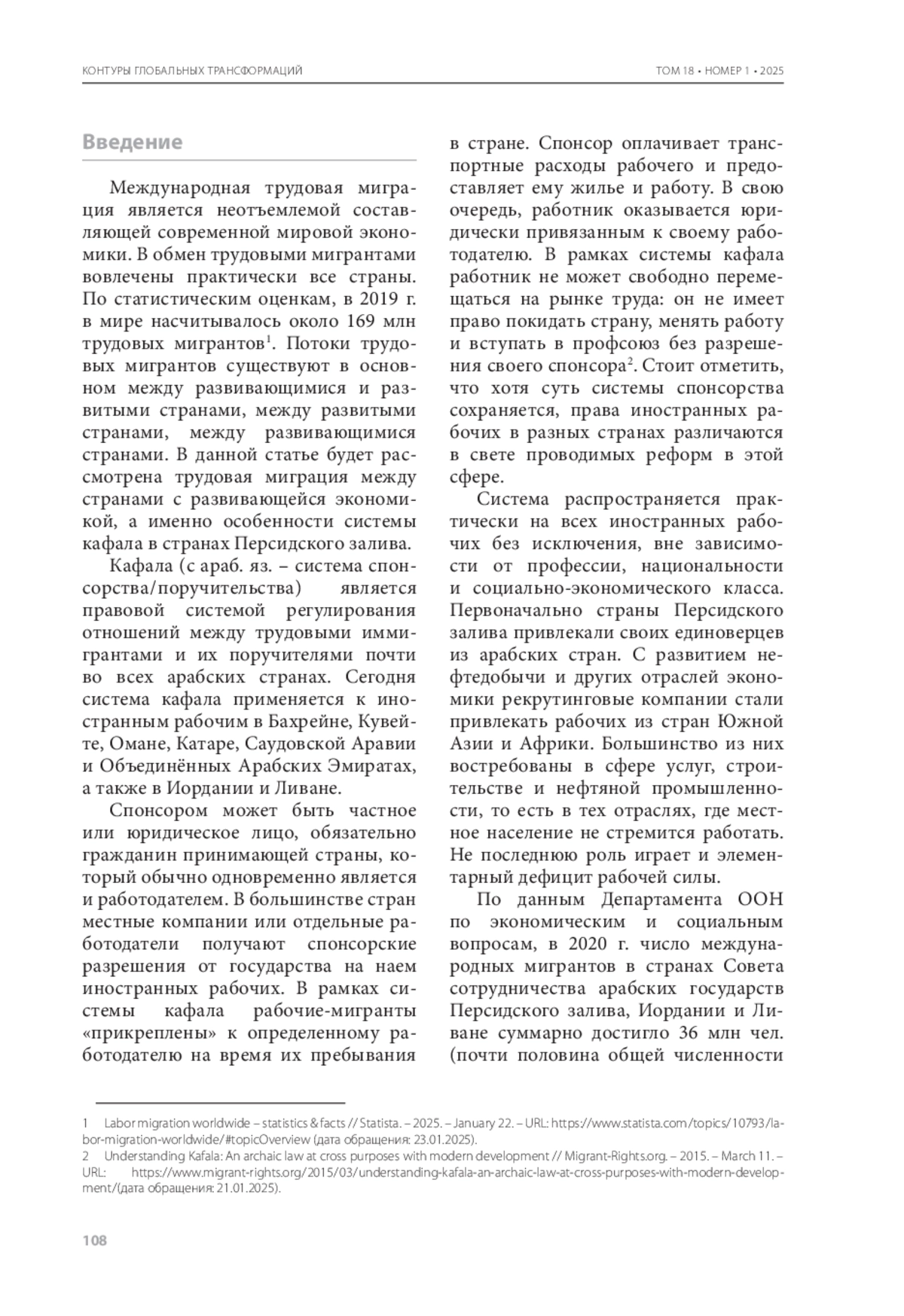 2. Бирюков Е.С. Аравийские монархии как центр трудовой миграции и их миграционная политика // Экономика труда. - 2024. - Т. 11, № 11. - С. 1775-1790. - https://doi.org/10.18334/et.11.11.122105.