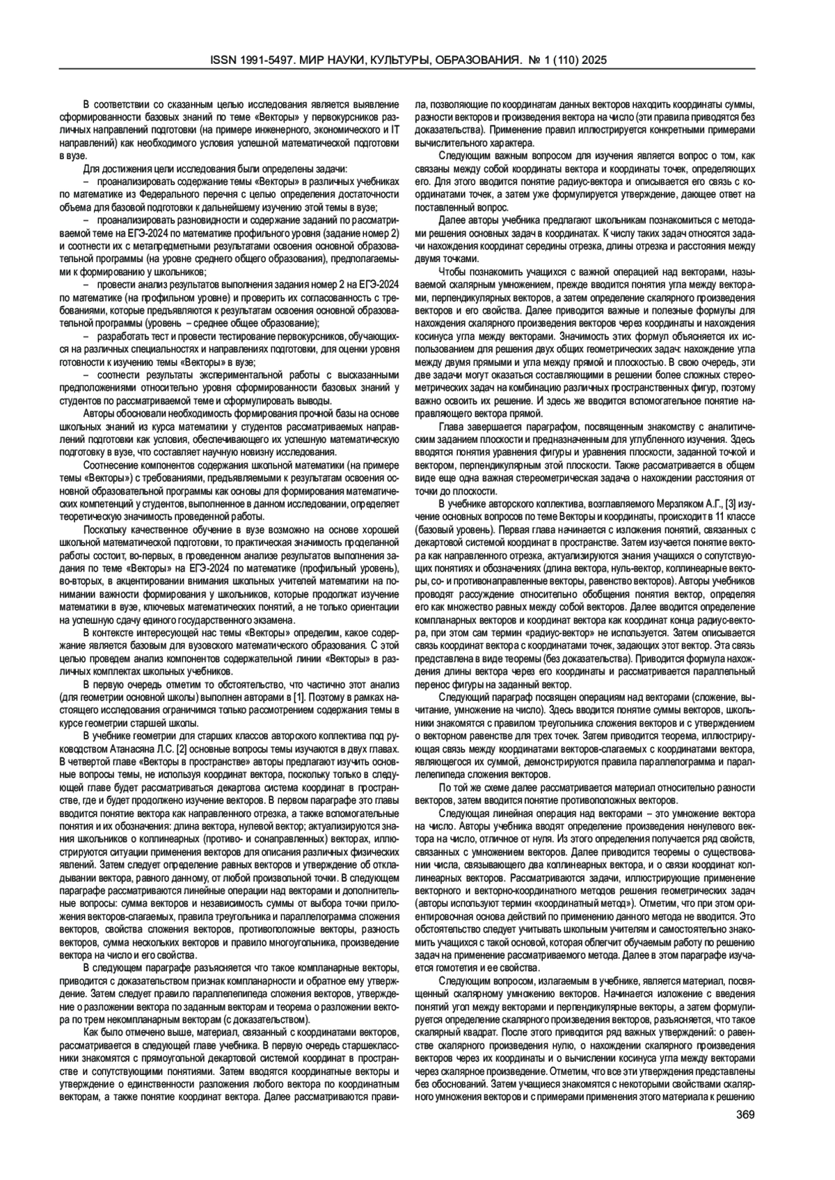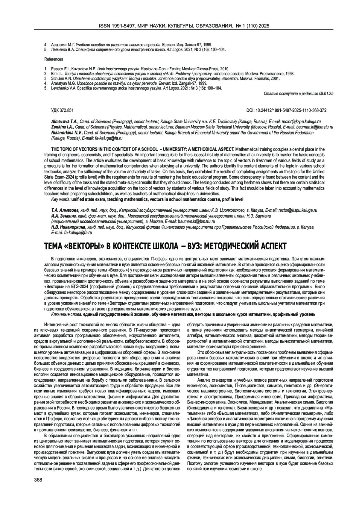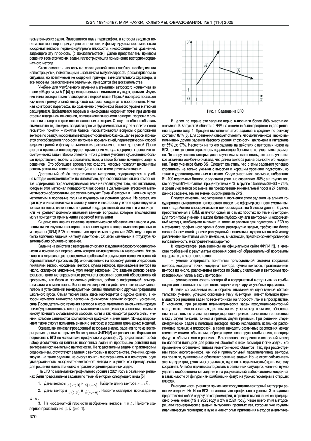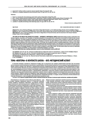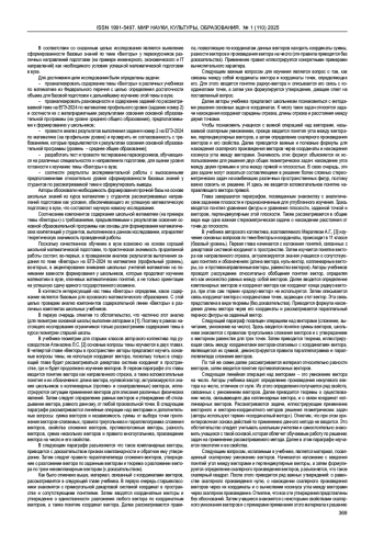 АЛМАЗОВА Т. А., ЗЕНКИНА И. А., НИКАНОРКИНА Н. В. ТЕМА «ВЕКТОРЫ» В КОНТЕКСТЕ ШКОЛА - ВУЗ: МЕТОДИЧЕСКИЙ АСПЕКТ // МИР НАУКИ, КУЛЬТУРЫ, ОБРАЗОВАНИЯ. 2025. № 1 (110)