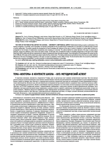 Статья: ТЕМА «ВЕКТОРЫ» В КОНТЕКСТЕ ШКОЛА - ВУЗ: МЕТОДИЧЕСКИЙ АСПЕКТ (2025)