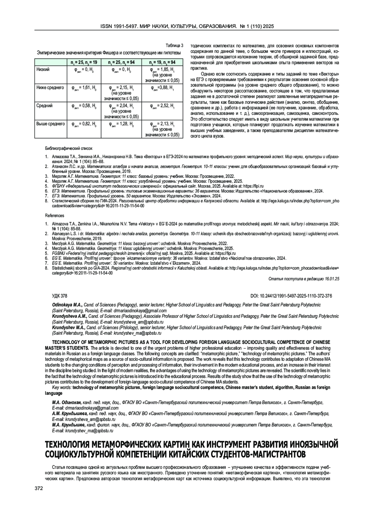 Журнал: МИР НАУКИ, КУЛЬТУРЫ, ОБРАЗОВАНИЯ