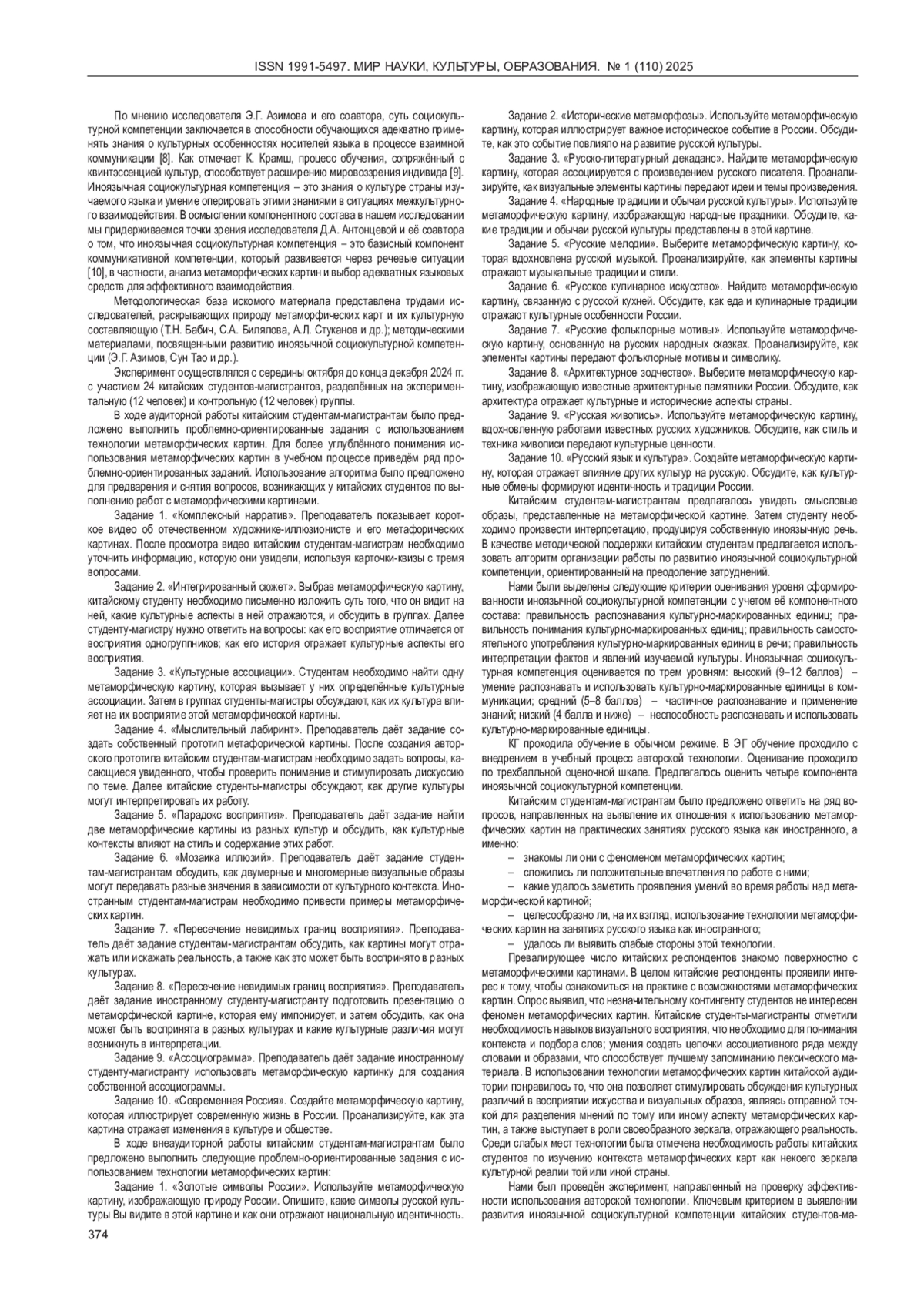 Статья: ТЕХНОЛОГИЯ МЕТАМОРФИЧЕСКИХ КАРТИН КАК ИНСТРУМЕНТ РАЗВИТИЯ ИНОЯЗЫЧНОЙ СОЦИОКУЛЬТУРНОЙ КОМПЕТЕНЦИИ КИТАЙСКИХ СТУДЕНТОВ- МАГИСТРАНТОВ (2025)