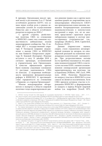 26. Reif F. Die Beziehungen zwischen der UNESCO und den Vereinigten Staaten von Amerika mit besonderer Beachtung der multilateralen Bildungsfinanzierung: Was waren die Gründe für und die Konsequenzen des Austritts? // UNESCO-Lehrstuhl für Internationale Beziehungen. - 2013. - N 6. - P. 1-18. - Нем. яз. - URL: https://tud.qucosa.de/api/qucosa:27343/attachment/ATT-1 (дата обращения: 05.02.2025).