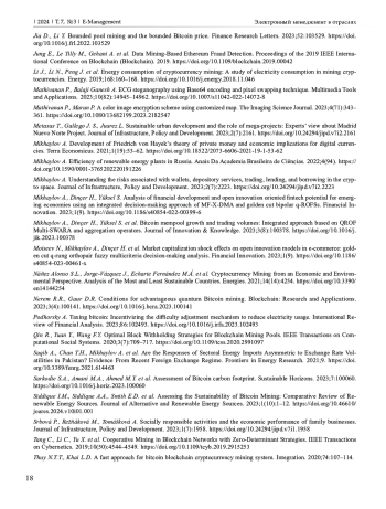 13. Fadeyi O., Krejcar O., Maresova P. et al. Opinions on Sustainability of Smart Cities in the Context of Energy Challenges Posed by Cryptocurrency Mining. Sustainability. 2019;1(12):169. https://doi.org/10.3390/su12010169