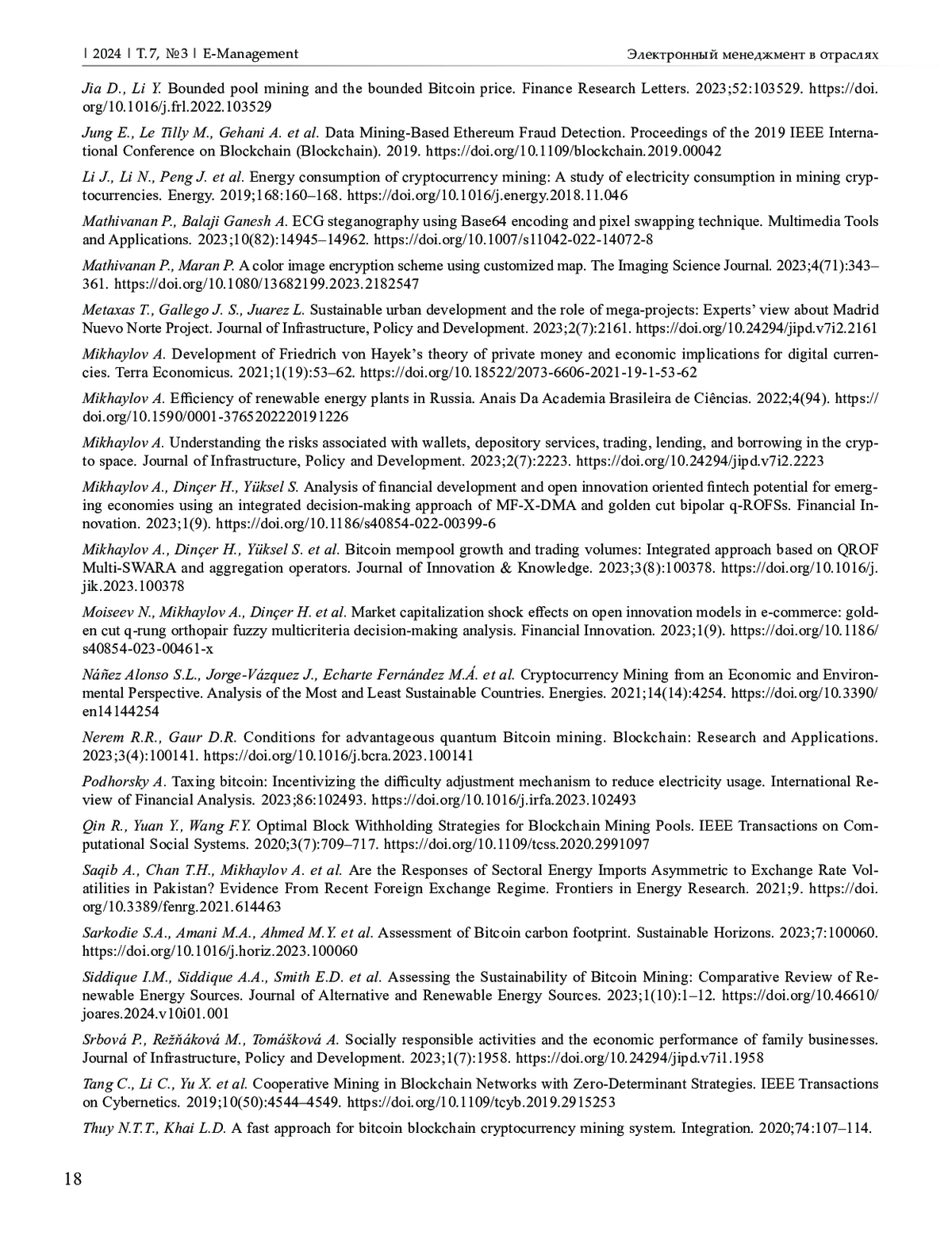 28. Jabłczyńska M., Kosc K., Ryś P. et al. Energy and cost efficiency of Bitcoin mining endeavor. PLOS ONE. 2023;3(18):e0283687. https://doi.org/10.1371/journal.pone.0283687