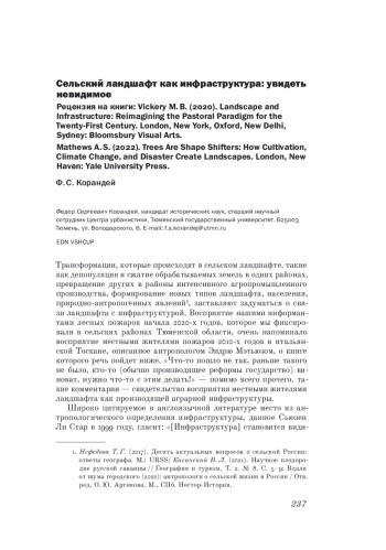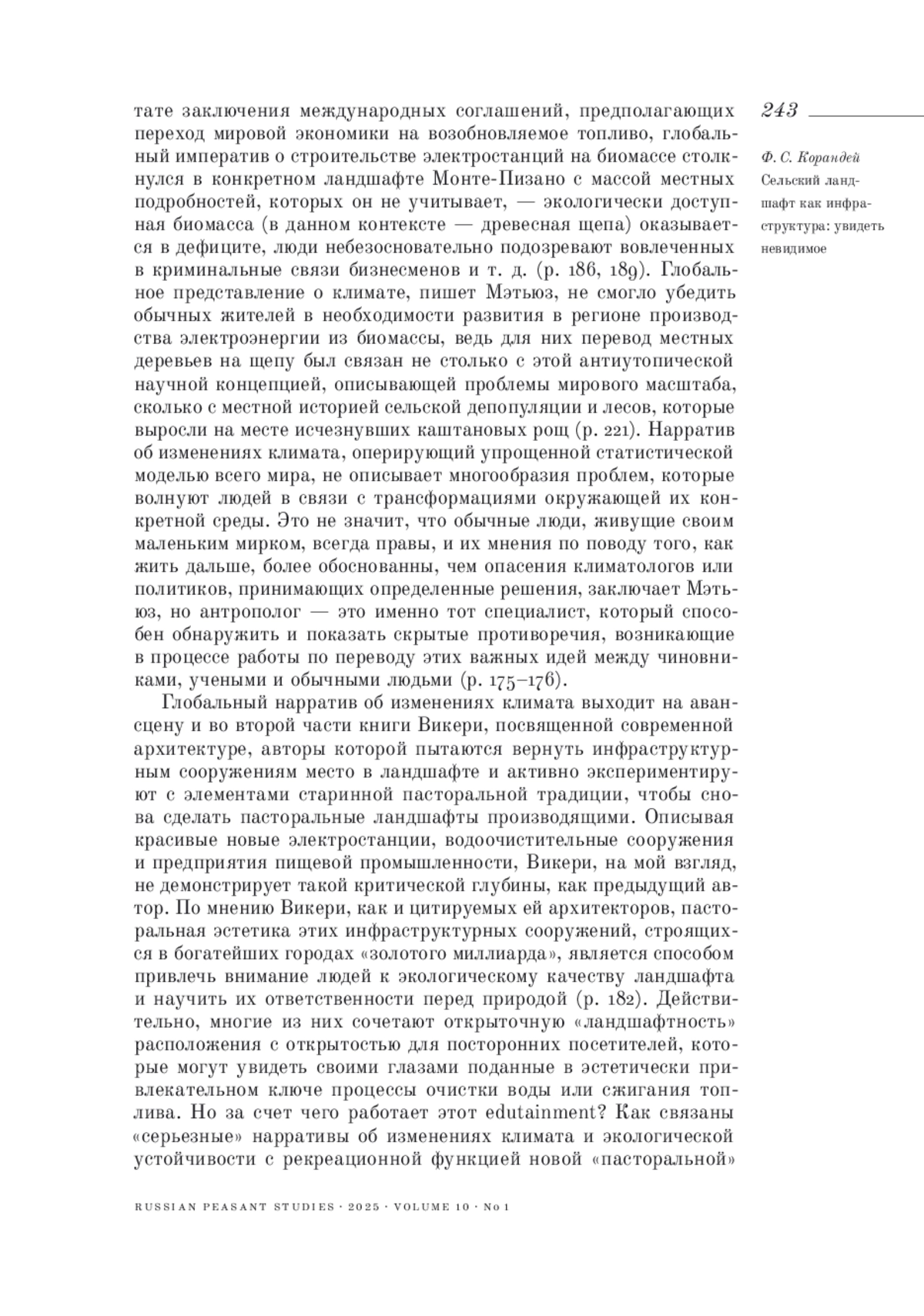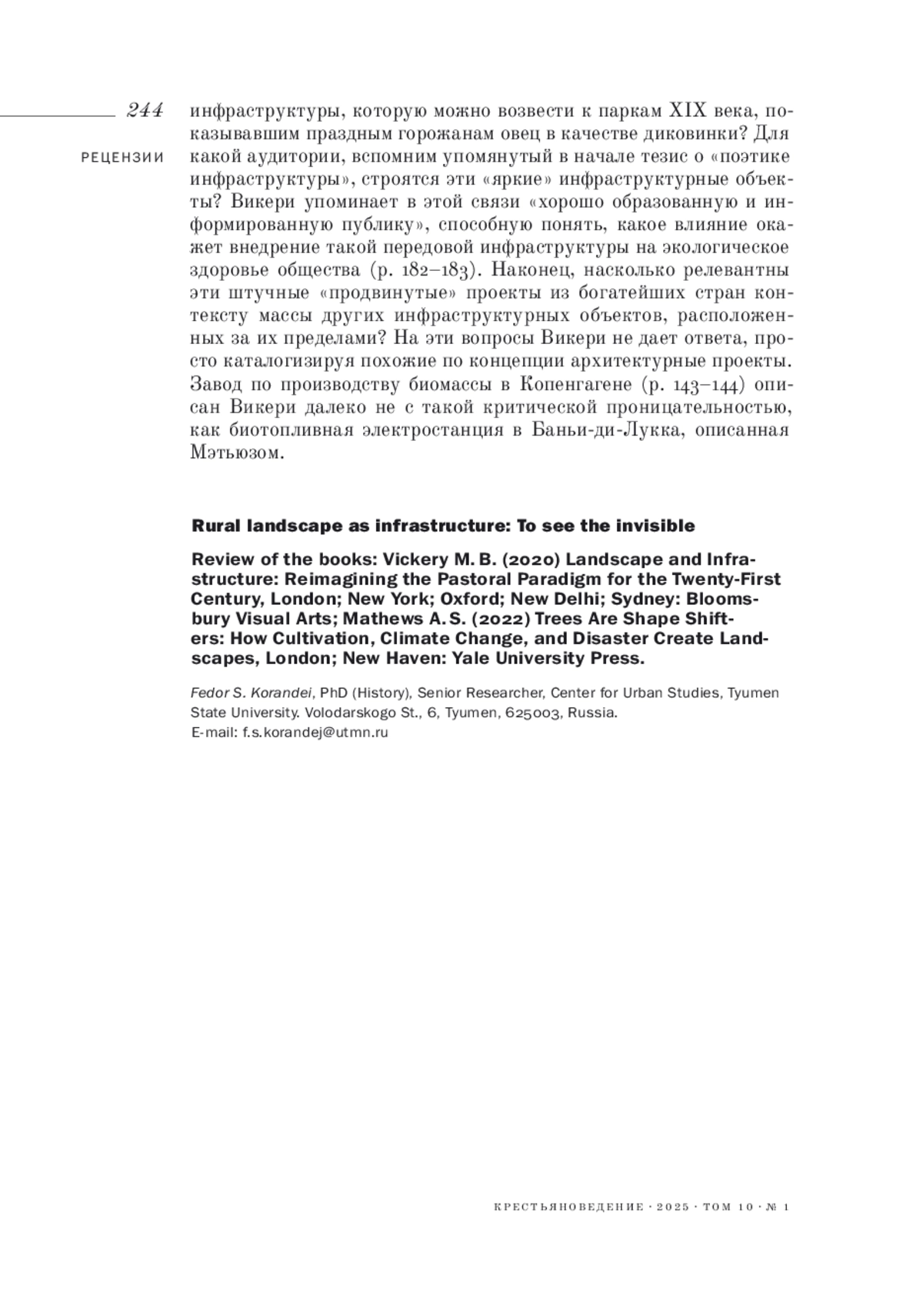 КОРАНДЕЙ Ф. С. СЕЛЬСКИЙ ЛАНДШАФТ КАК ИНФРАСТРУКТУРА: УВИДЕТЬ НЕВИДИМОЕ // КРЕСТЬЯНОВЕДЕНИЕ. 2025. Т. 10 № 1