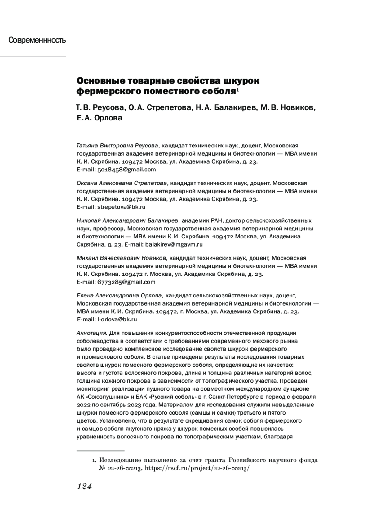 8. Реусова Т. В., Стрепетова О. А. (2020). Основные свойства шкурок соболя, формирующие качество, спрос и ценовую политику меховых товаров // Костюмология. Т. 5. № 4. С. 15. EDN: WOTJOY