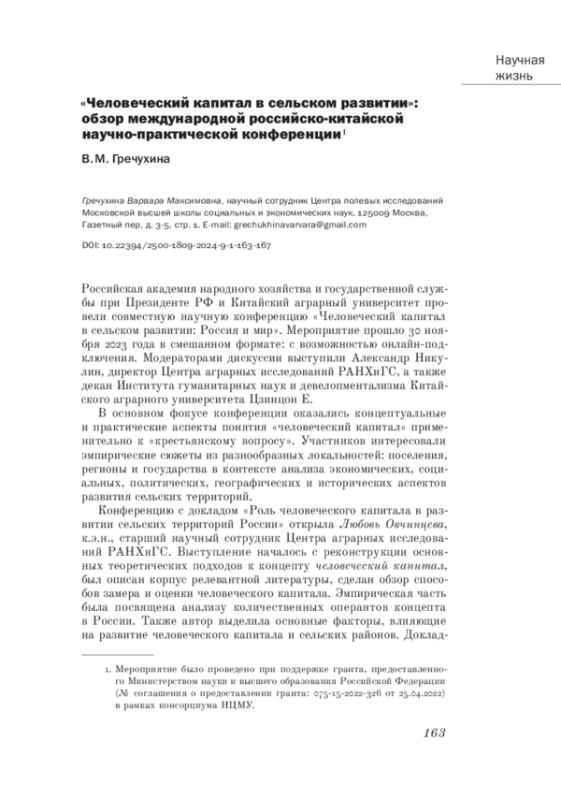 Российская академия народного хозяйства и государственной службы при Президенте РФ и Китайский аграрный университет провели совместную научную конференцию «Человеческий капитал в сельском развитии: Россия и мир». Мероприятие прошло 30 ноября 2023 года в смешанном формате: с возможностью онлайн-подключения. Модераторами дискуссии выступили Александр Никулин, директор Центра аграрных исследований РАНХиГС, а также декан Института гуманитарных наук и девелопментализма Китайского аграрного университета Цзинцон Е.