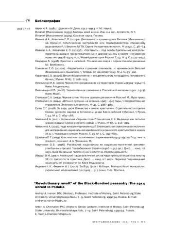 12. Степанов С. А. (2014). “Истинно русские” на Украине. 1905-1917 годы // Государственное управление. Электронный вестник. № 47. С. 488-489. EDN: ANNWVM