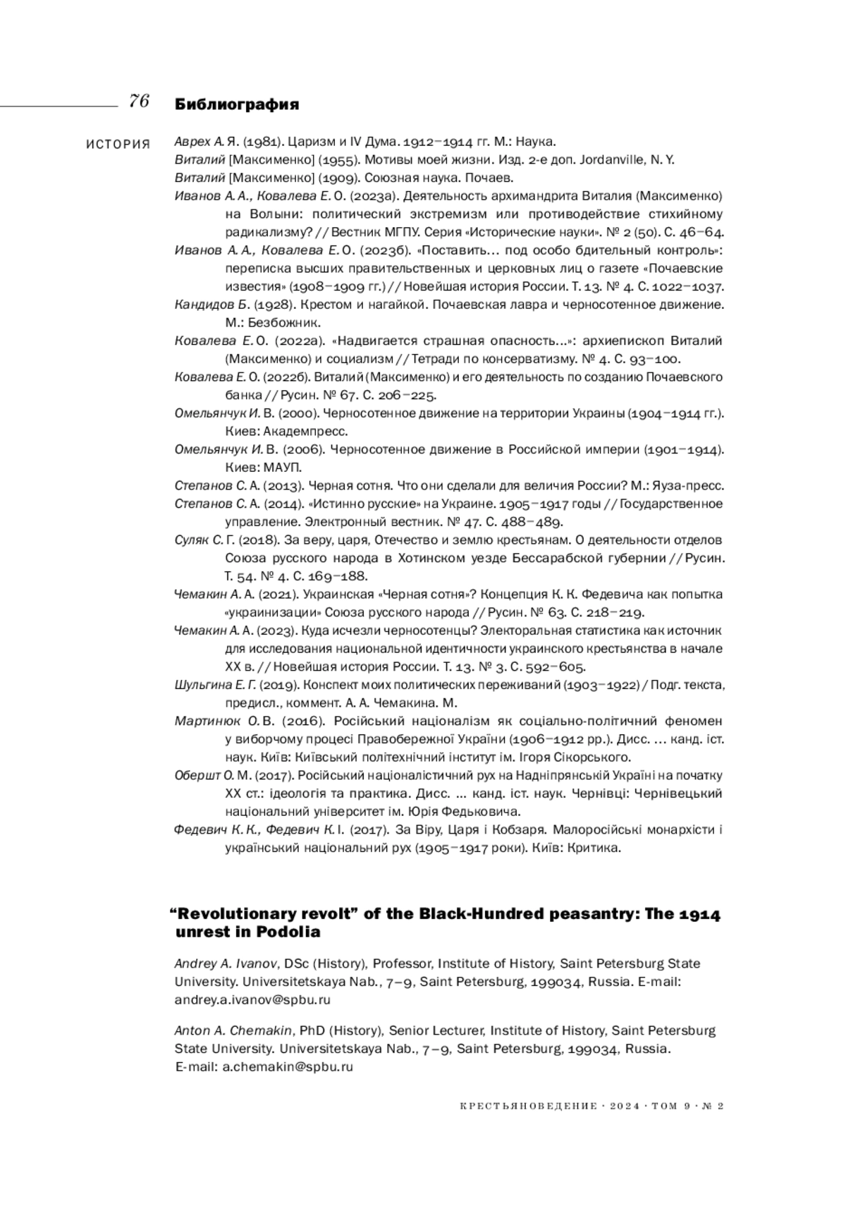 14. Чемакин А. А. (2021). Украинская “Черная сотня”? Концепция К. К. Федевича как попытка “украинизации” Союза русского народа // Русин. № 63. С. 218-219.