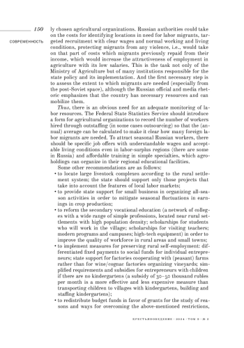 5. Kisly O. A., Isaeva M. A. (2023) The situation of labor migrants in Russian agriculture under the pandemic. URL: https://cyberleninka.ru/article/n/polozhenie-trudovyh-migrantov-v-period-pandemii-v-selskom-hozyaystve-rossii/viewer. (In Russian).