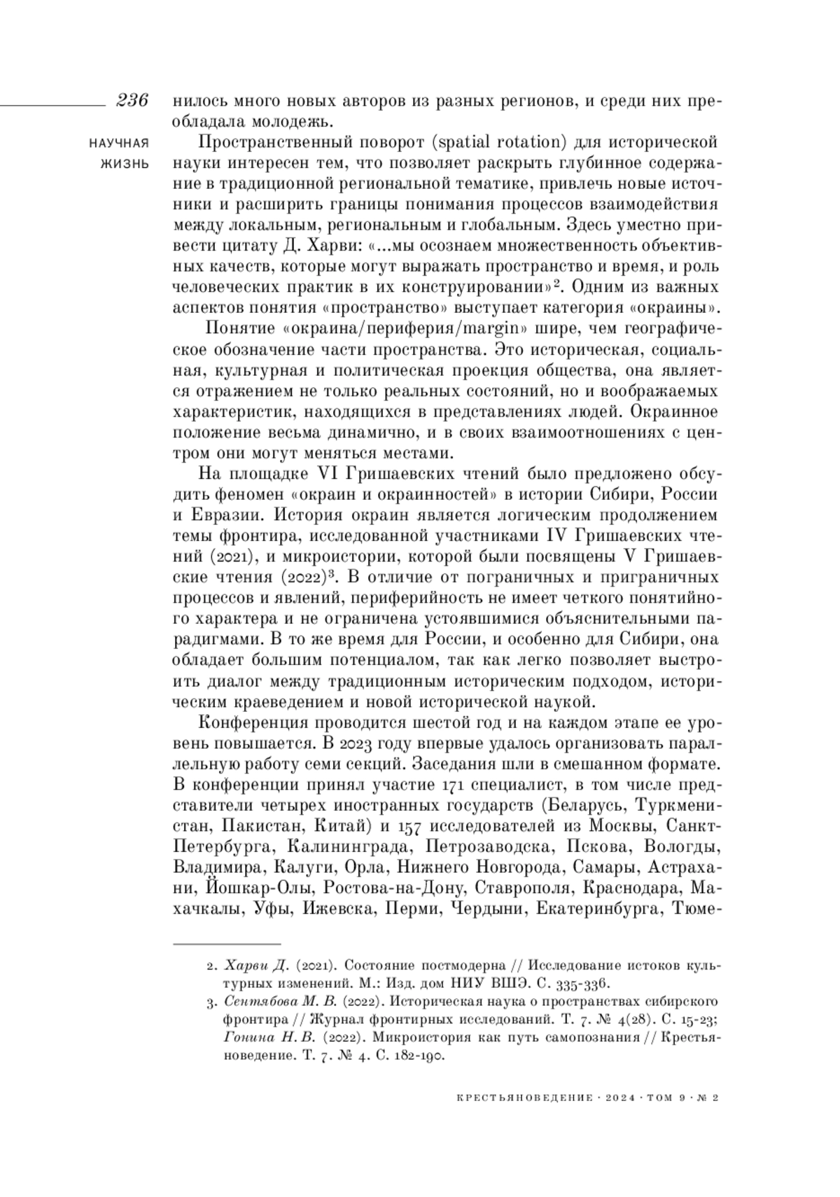«Окраины воображаемые и реальные» — так называлась международная конференция, состоявшаяся в Красноярске 29‒30 ноября 2023 года. Она проходила в рамках ежегодных чтений, посвященных памяти заслуженного деятеля науки В. В. Гришаева, организованных кафедрой истории и политологии Красноярского государственного аграрного университета при поддержке Института истории СО РАН, Сибирского федерального университета, Государственного архива Красноярского края, Государственной универсальной научной библиотеки Красноярского края и Красноярского краевого краеведческого музея