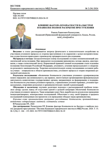 10. Богинский М.М. Механизм обеспечения безопасности личности как гарантия нейтрализации противоправного воздействия процессу производства по уголовному делу: автореф. дис. … канд. юрид. наук: 5.1.4. Казань, 2023. 24 с. EDN: NFWDTA