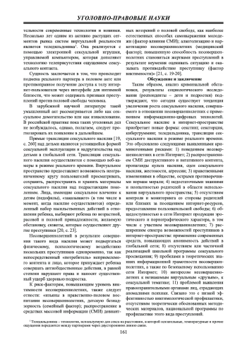 16. Туркулец В.А. Секстинг в отношении несовершеннолетних: уголовно-правовой и виктимологический аспекты // Юридические исследования. 2020. № 5. С. 1 - 11. EDN: QGEBEL