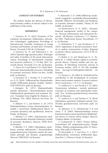 1. Воронова Ю. Д. Динамика развития фирмы / Ю. Д. Воронова // Математика, информационные технологии, приложения: сб. тр. Межвузовской науч. конф. молодых ученых и студентов (Воронеж, 26 апреля 2023 г.). - Воронеж, 2023. - С. 89-96. EDN: LXASHQ
