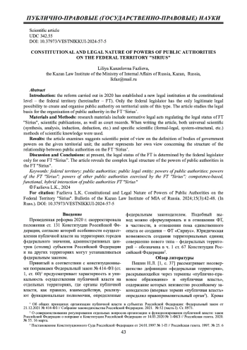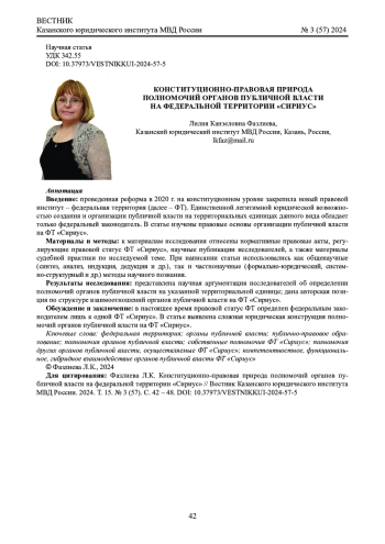 2. Майборода В.А. Правосубъектность федеральной территории “Сириус” // Юрист. 2023. № 6. С. 2 - 8. EDN: BHQXIG