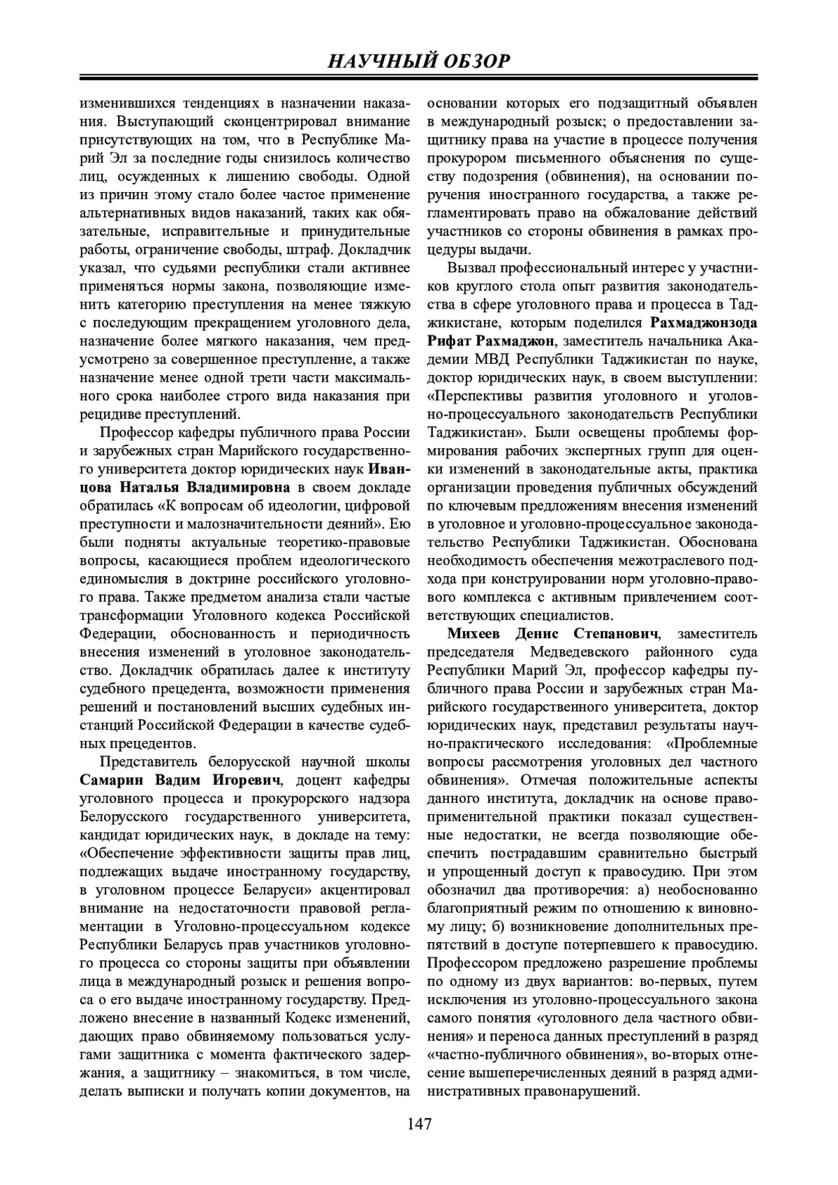 17 мая 2024 года одна из научных площадок Международного юридического форума «Марий Эл-2024», проходившего в Марийском государственном университете, была отведена проведению Всероссийского научно-практического круглого стола с международным участием на тему «Перспективы развития российского уголовного и уголовно-процессуального законодательства».