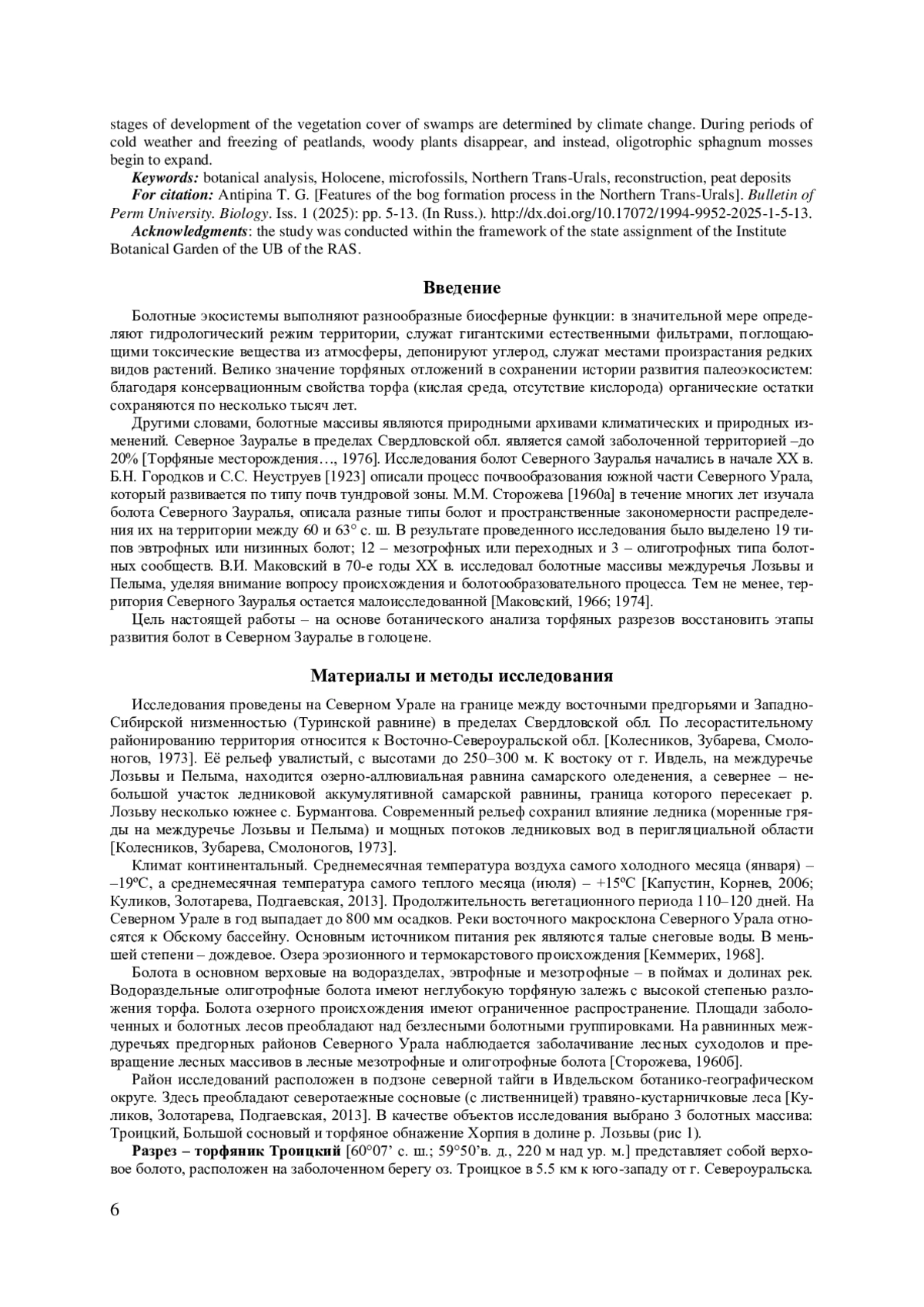 23. Panova N.K., Antipina T.G. Late Glacial and Holocene environmental history on the eastern slope of the Middle Ural Mountains, Russia // Quaternary International. 2016. Vol. 420. P. 76-89. EDN: YUTXWB