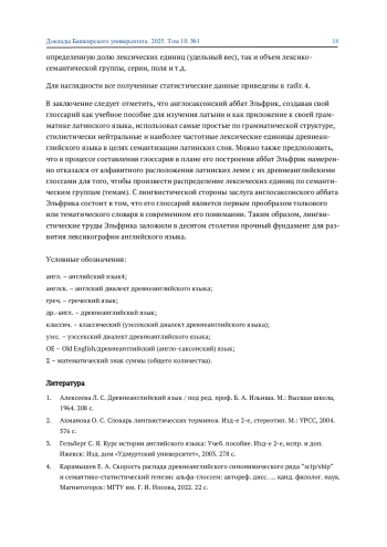 4. Карамышев Е. А. Скорость распада древнеанглийского синонимического ряда “scip/ship” и семантико-статистический генезис альфа-глоссем: автореф. дисс. … канд. филолог. наук. Магнитогорск: МГТУ им. Г. И. Носова, 2022. 22 с. EDN: XMSCUL