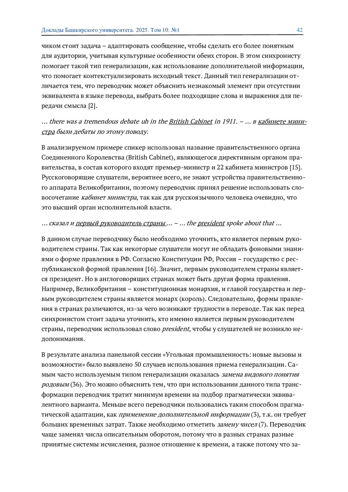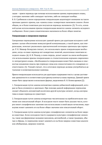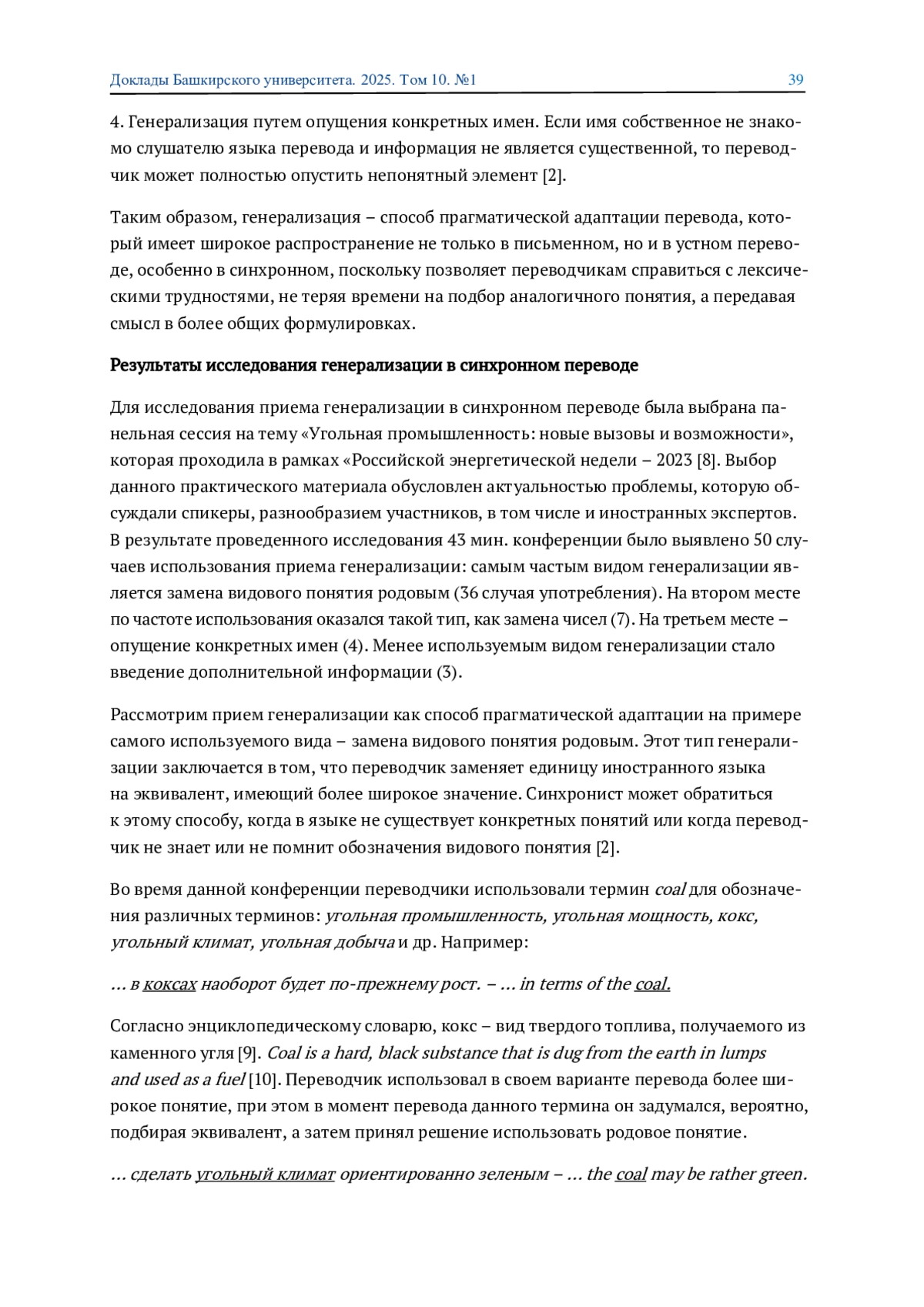 Статья: ГЕНЕРАЛИЗАЦИЯ КАК СПОСОБ ПРАГМАТИЧЕСКОЙ АДАПТАЦИИ В СИНХРОННОМ ПЕРЕВОДЕ (2025)