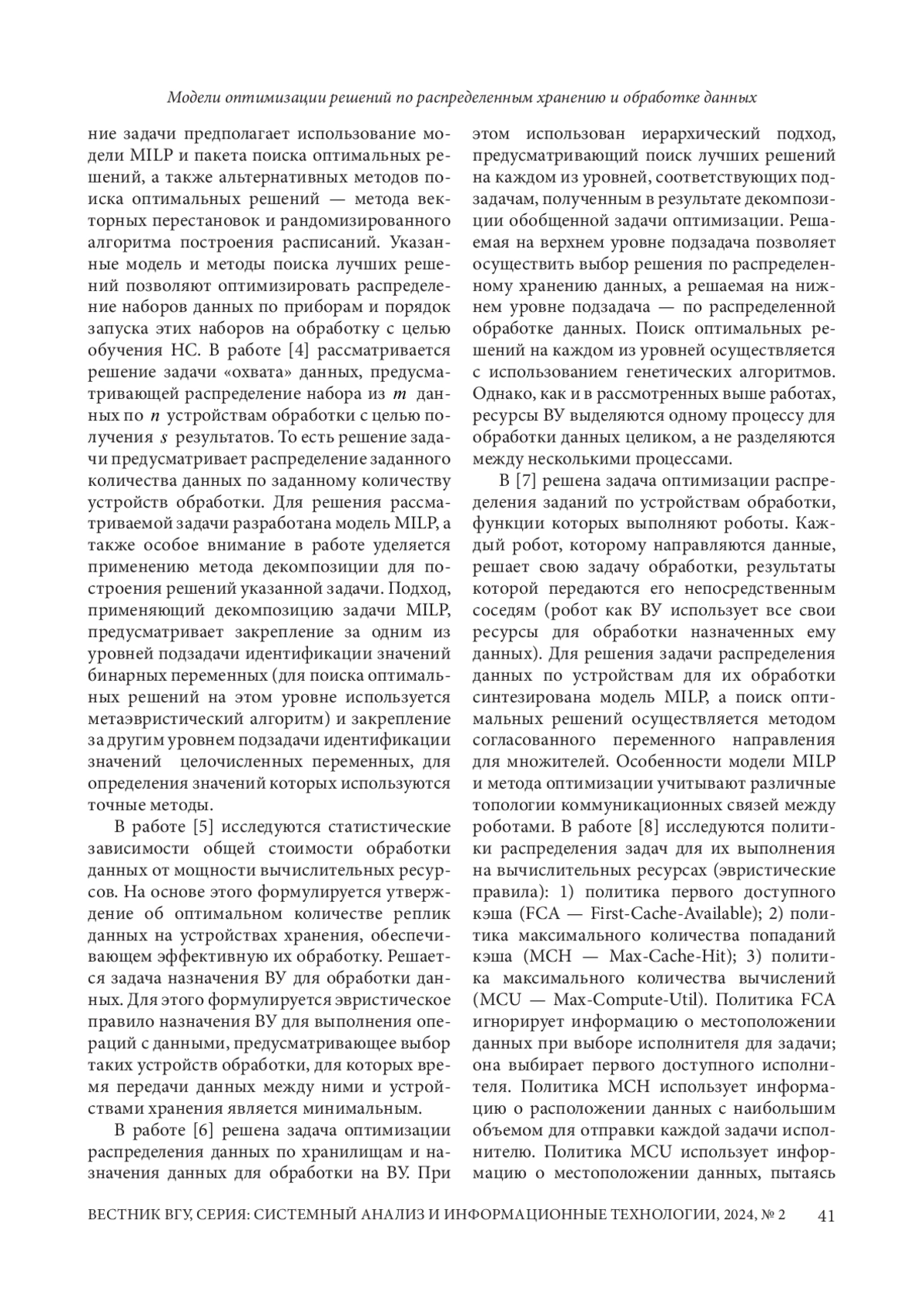 КРОТОВ К. В. МОДЕЛИ СМЕШАННОГО ЦЕЛОЧИСЛЕННОГО ЛИНЕЙНОГО ПРОГРАММИРОВАНИЯ ОПТИМИЗАЦИИ РЕШЕНИЙ ПО РАСПРЕДЕЛЕННЫМ ХРАНЕНИЮ И ОБРАБОТКЕ ДАННЫХ // ВЕСТНИК ВОРОНЕЖСКОГО ГОСУДАРСТВЕННОГО УНИВЕРСИТЕТА. СЕРИЯ: СИСТЕМНЫЙ АНАЛИЗ И ИНФОРМАЦИОННЫЕ ТЕХНОЛОГИИ. 2024. № 2