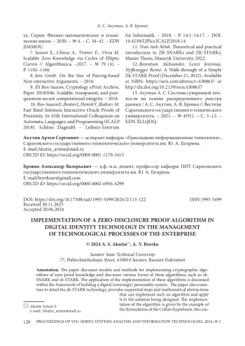 6. Демочкин П. Б. Масштабируемые zk-SNARK / П. Б. Демочкина // Вестник Балтийского федерального университета им. И. Канта. Серия: Физико-математические и технические науки. - 2020. - № 4. - С. 34-41. EDN: JIMMOU