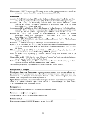 1. Асмолов А.Г. Психология современности: вызовы неопределенности, сложности и разнообразия // Психологические исследования. 2015. Том 8. № 40. URL: http://psystudy.ru (дата обращения: 5.05.2025).