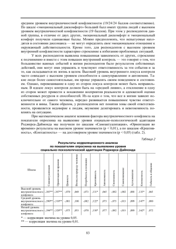 В статье представлены результаты исследования внутриличностного конфликта и его влияния на социальную адаптацию и самоактуализацию личности как факторов социализации. Вопросы изучения социальной адаптации, самоактуализации внутриличностного конфликта, по мнению автора, представляют интерес для работников помогающих профессий в социальной и психологической диагностике и помощи. Автор, опираясь на теоретические работы, предполагает, что социализация личности - это процесс приобщения, адаптации к нормам, ценностям общества, группы, где живет и развивается личность. Такое понимание процессов социальной адаптации и социализации личности позволяет поставить между ними знак равенства. При этом акцентируется внимание на том, что некоторые исследователи полагают, что процесс социальной адаптации и социализации личности протекает значительно успешнее у лиц с такими характеристиками ценностно-мотивационной сферы личности, которые определяют ее стремление к самоактуализации. Внутриличностный конфликт, то есть несовпадение целевой, ценностной и смысловой сфер, может привести к дезадаптации и нарушению процесса социализации. В результате исследования было доказано, что уровень проявления внутриличностного конфликта оказывает влияние на процесс социализации: именно испытуемые с высоким уровнем внутренней конфликтности меньше разделяют ценности самоактуализирующейся личности, испытывают эмоциональный дискомфорт в ситуации социального взаимодействия, избегают проблемных ситуаций, склонны к подчинению, принятию воли других. Также, было выявлено, что уровень внутриличностной конфликтности повышается и углубляется, когда у личности начинает разворачиваться конфликт вокруг экзистенциальных ценностей, что приводит к дезадаптации личности, ее закрытости от внешнего мира, снижению мотивации.