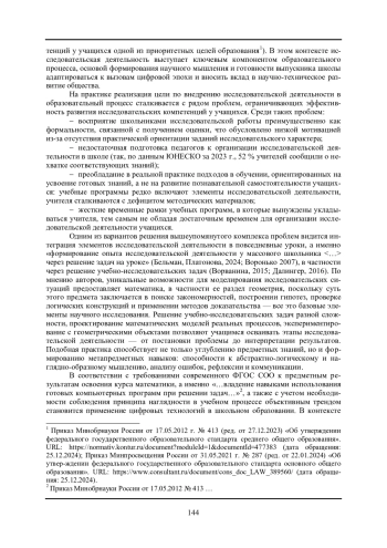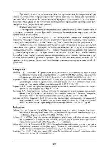 Ключевые фразы: ИССЛЕДОВАТЕЛЬСКАЯ ДЕЯТЕЛЬНОСТЬ, учебно-исследовательские задачи, цифровые технологии, обучение геометрии, geogebra