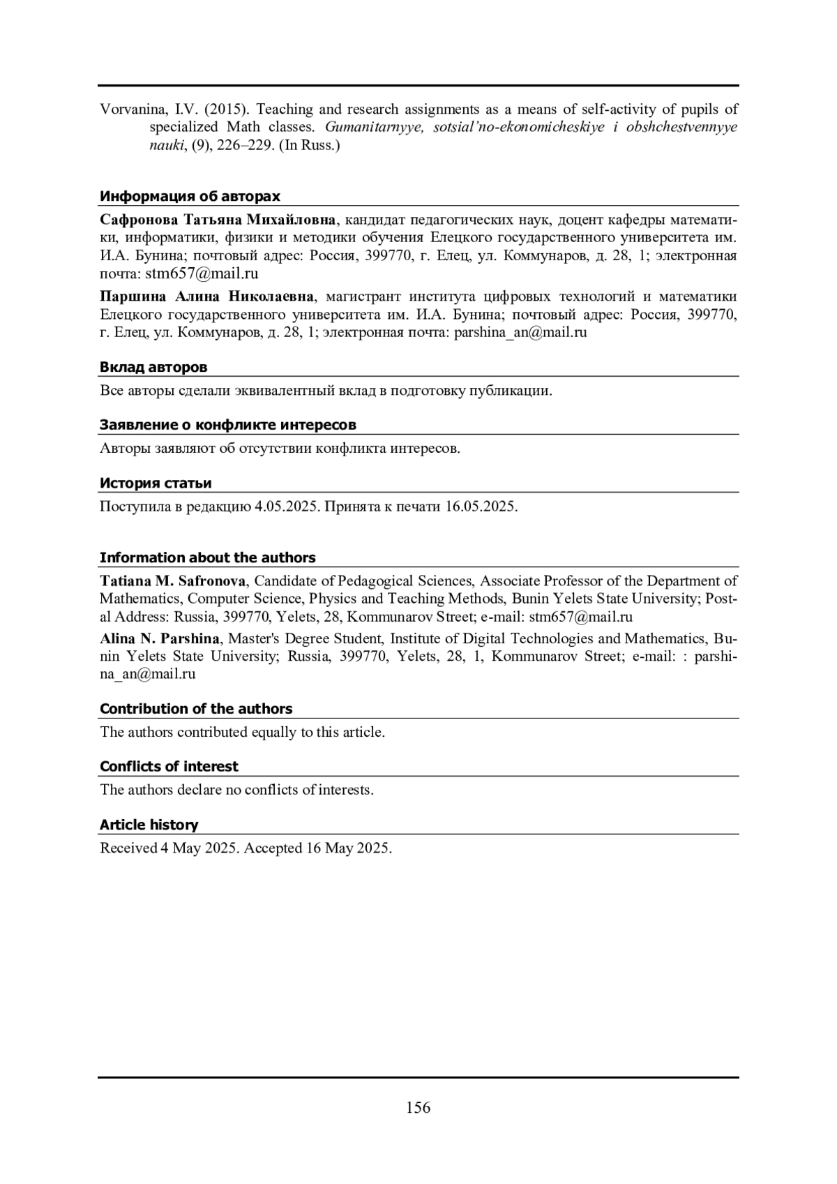 Автор (ы): Сафронова Татьяна Михайловна, Паршина Алина Николаевна