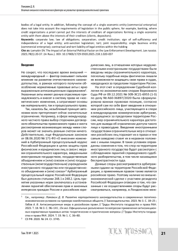 ЛОМАКИН Д. В. ВЛИЯНИЕ ВНЕШНЕГО ПОЛИТИЧЕСКОГО ФАКТОРА НА РАЗВИТИЕ ПРАВОПРИМЕНИТЕЛЬНОЙ ПРАКТИКИ // LEX RUSSICA (РУССКИЙ ЗАКОН). 2025. ТОМ 78, № 1