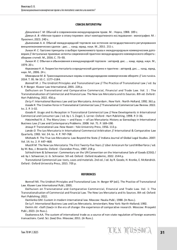7. Мажорина М. В. Транснациональные нормы в международном коммерческом обороте // Lex russica. 2014. Т. 95. № 10. С. 1177-1184.
