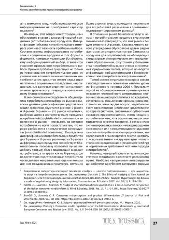 3. Filotto U., Lucarelli C., Marinelli N. Nudge of shared information responsibilities: a meso-economic perspective of the Italian consumer credit reform // Mind & Society. 2018. No. 17. P. 1-14.