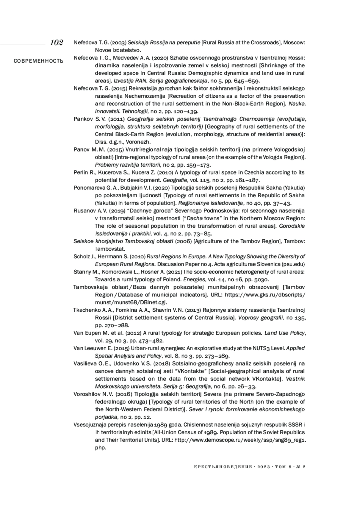 24. Нефедова Т. Г. (2012). Основные тенденции изменения социально-экономического пространства сельской России // Известия Российской академии наук. Серия географическая. № 3. С. 5-21. EDN: PAGJLN