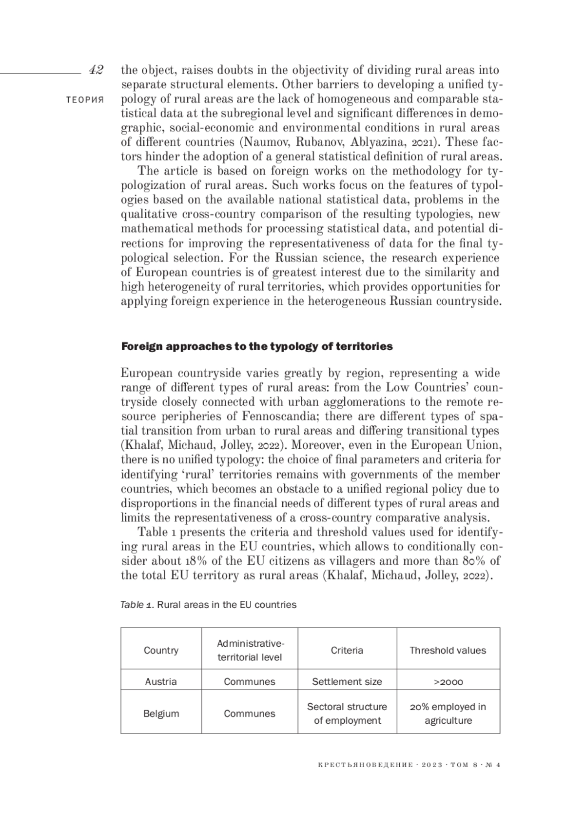 9. Khalaf P., Michaud G., Jolley G. J. (2022) Toward a new rural typology: Mapping resources, opportunities, and challenges. Economic Development Quarterly, vol. 36, no 3, pp. 276-293. EDN: MAKGEC