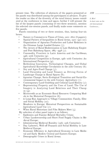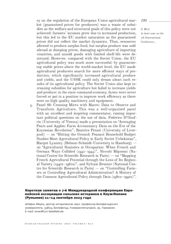 MERL S. КОРОТКАЯ ЗАМЕТКА О 7-Й МЕЖДУНАРОДНОЙ КОНФЕРЕНЦИИ ЕВРОПЕЙСКОЙ АССОЦИАЦИИ СЕЛЬСКИХ ИСТОРИКОВ В КЛУЖ-НАПОКЕ (РУМЫНИЯ) 11-14 СЕНТЯБРЯ 2023 ГОДА // КРЕСТЬЯНОВЕДЕНИЕ. 2023. Т. 8 № 4