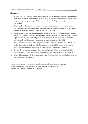 5. Newman K. God is a Mathematician. [Электронный ресурс] URL: https://www.biblebeliev- ers.org.au/panin2.htm#God%20is%20A%20Mathematician (дата обращения: 12.04.2025).