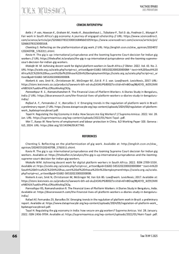 8. Tayal H. Regulating the Gig Economy in India: How Secure Are Gig Workers? // Supremo Amicus. 2022. Vol. 28. Jan. URL: https://supremoamicus.org/wp-content/uploads/2022/01/Haini-Tayal-.pdf.