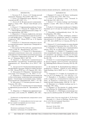 6. Шарандин А. Л. Лексика, морфология, синтаксис и коммуникация как интегративное единство (в контексте идей профессора С. Г. Ильенко) // Слово. Словарь. Словесность. СПб.: Изд-во РГПУ им. А. И. Герцена, 2019. С. 41-46.