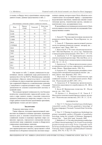 7. Меркулова И. А. Лексико-семантические ядра славянских языков в сопоставительном аспекте. Воронеж: Издательский дом ВГУ, 2021. 255 с. EDN: NVKYTH