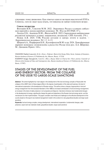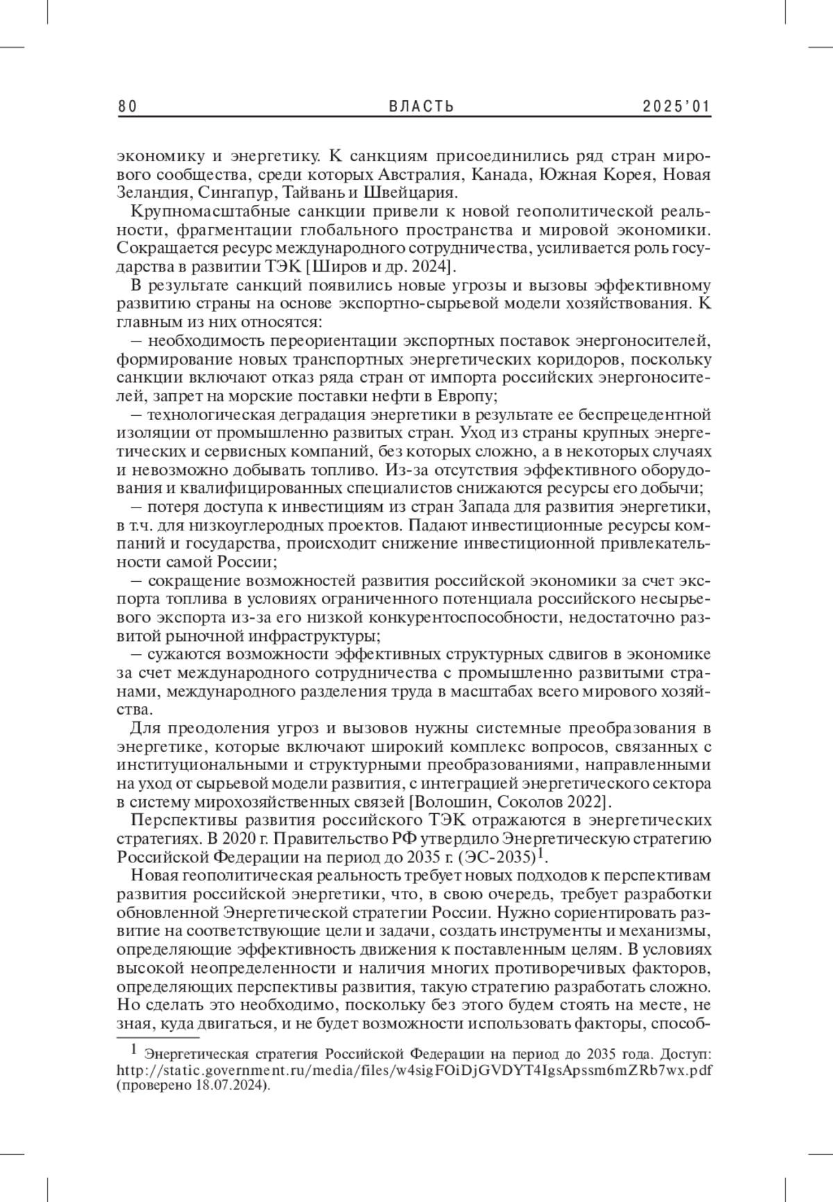 1. Волошин В.И., Соколов М.М. 2022. Энергетика России в условиях глобального перехода к низкоуглеродной экономике. М.: Изд-во ИЭ РАН. 47 с.