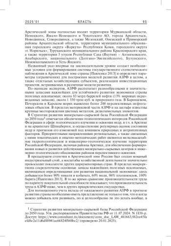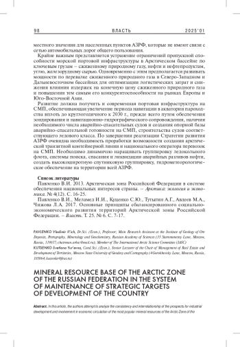 ПАВЛЕНКО В. И., КУЦЕНКО С. Ю. МИНЕРАЛЬНО-СЫРЬЕВАЯ БАЗА АРКТИЧЕСКОЙ ЗОНЫ РОССИЙСКОЙ ФЕДЕРАЦИИ В СИСТЕМЕ ОБЕСПЕЧЕНИЯ СТРАТЕГИЧЕСКИХ ЦЕЛЕЙ РАЗВИТИЯ СТРАНЫ // ВЛАСТЬ. 2025. ТОМ 33 № 1