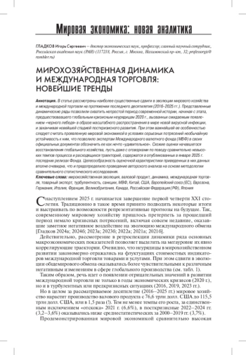 Статья: МИРОХОЗЯЙСТВЕННАЯ ДИНАМИКА И МЕЖДУНАРОДНАЯ ТОРГОВЛЯ: НОВЕЙШИЕ ТРЕНДЫ (2025)