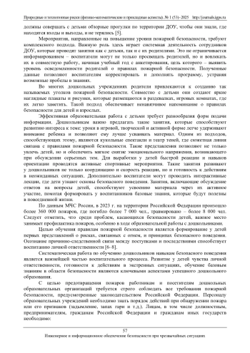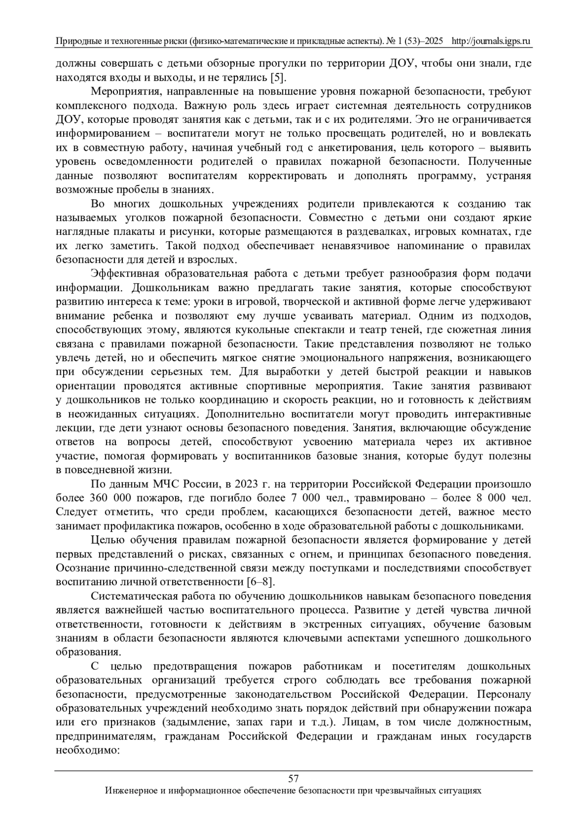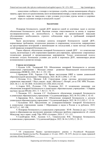 Статья: ОСОБЕННОСТИ ОБЕСПЕЧЕНИЯ ПОЖАРНОЙ БЕЗОПАСНОСТИ ЗДАНИЙ ДОШКОЛЬНЫХ ОБРАЗОВАТЕЛЬНЫХ УЧРЕЖДЕНИЙ (2025)