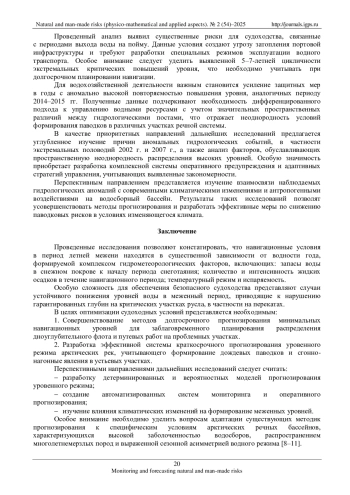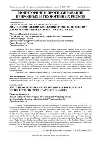 Статья: АНАЛИЗ МНОГОЛЕТНИХ КОЛЕБАНИЙ УРОВНЯ ВОДЫ РЕКИ ПУР ДЛЯ ОБЕСПЕЧЕНИЯ БЕЗОПАСНОСТИ СУДОХОДСТВА (2025)