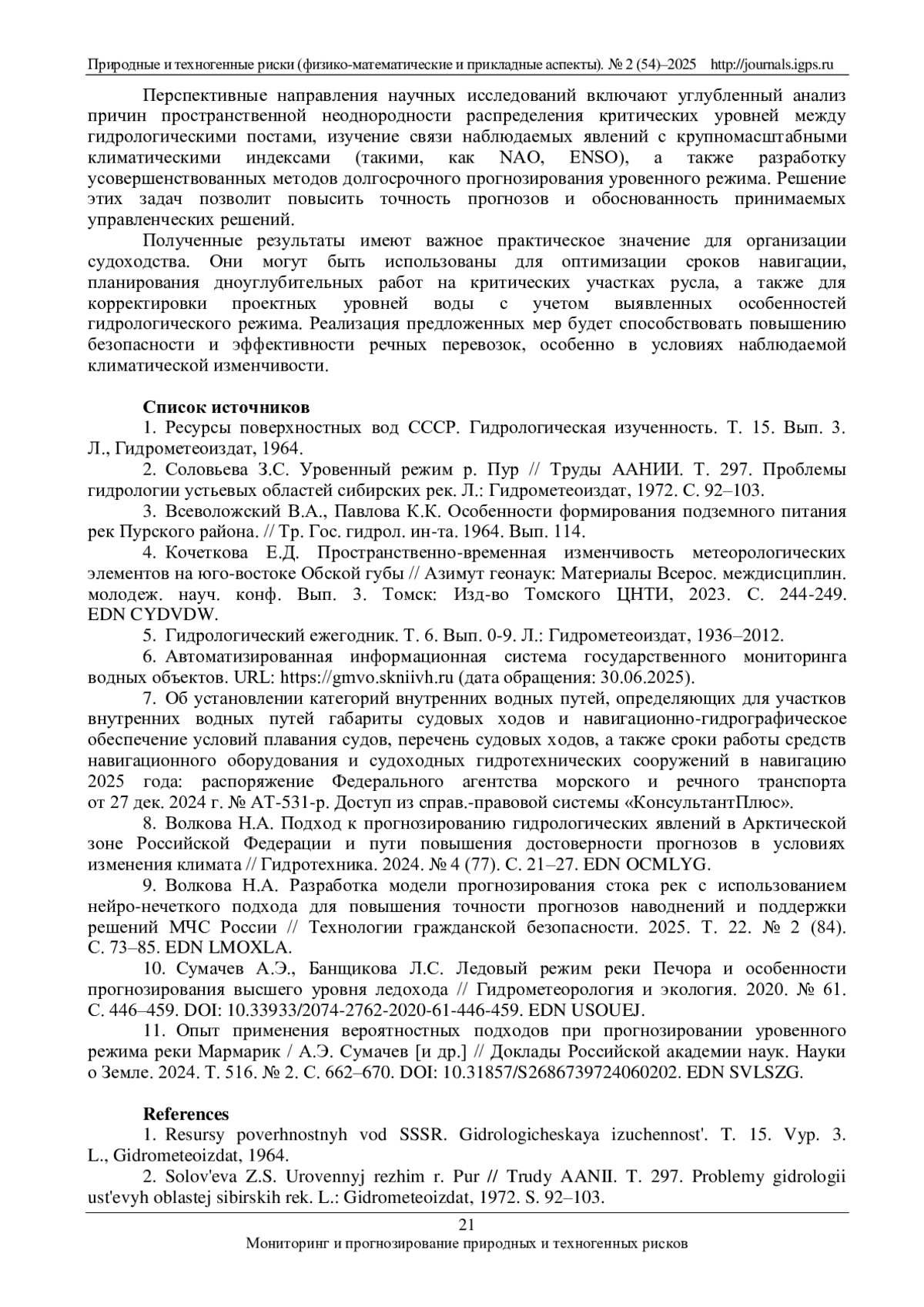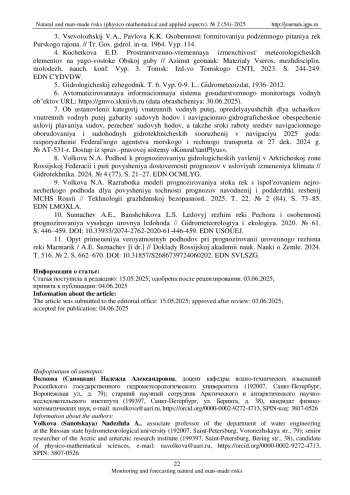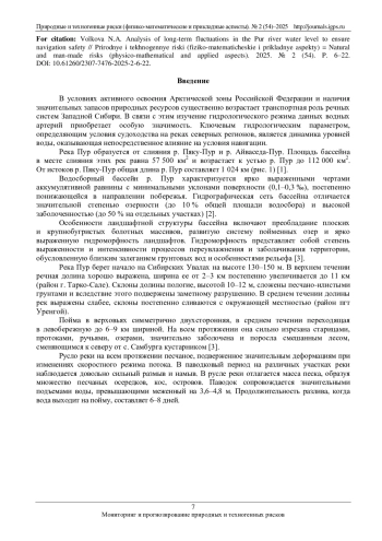 ВОЛКОВА Н. А. АНАЛИЗ МНОГОЛЕТНИХ КОЛЕБАНИЙ УРОВНЯ ВОДЫ РЕКИ ПУР ДЛЯ ОБЕСПЕЧЕНИЯ БЕЗОПАСНОСТИ СУДОХОДСТВА // ПРИРОДНЫЕ И ТЕХНОГЕННЫЕ РИСКИ (ФИЗИКО-МАТЕМАТИЧЕСКИЕ И ПРИКЛАДНЫЕ АСПЕКТЫ). 2025. № 2 (54)