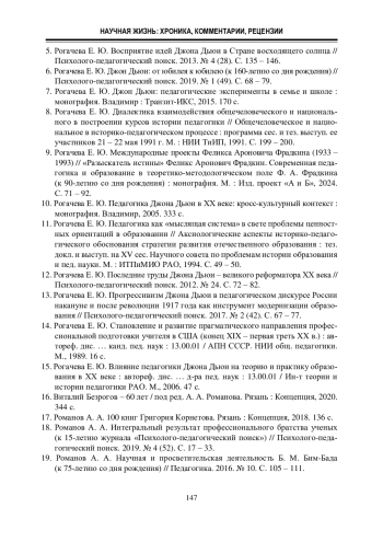 10. Рогачева Е. Ю. Педагогика Джона Дьюи в ХХ веке: кросс-культурный контекст : монография. Владимир, 2005. 333 с.