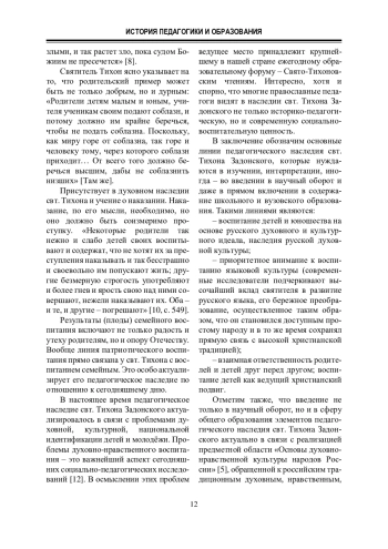 7. Мельников Д. В. Воспитательный аспект сочинений Тихона Задонского и современное образование // Общество: социология, педагогика, психология. 2017. № 5. С. 100 - 105.